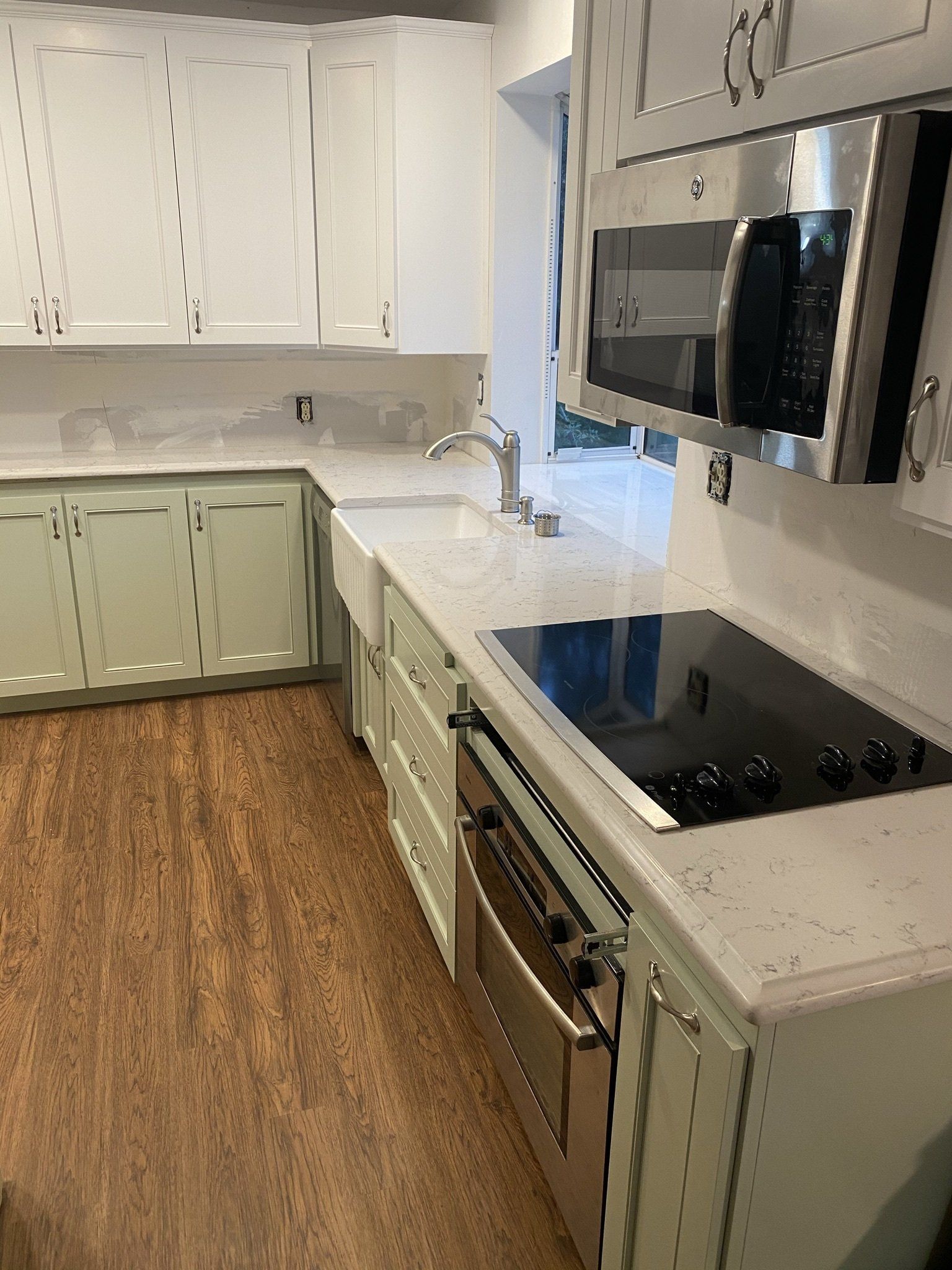We had Mike do a kitchen and bathroom remodel in an old house after a leak/flood. Gina and Mike were great at communicating with us, an elderly mom and her 3 middle age daughters - not easy! Mike and Maria did a top-notch job and dealt with the glitches associated with an old house with patience and expertise. - Martha B